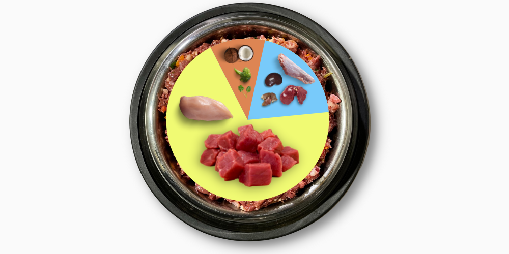 All our meals closely follow these ratios. Similar to the BARF model with the exception of fruits, vegetables.