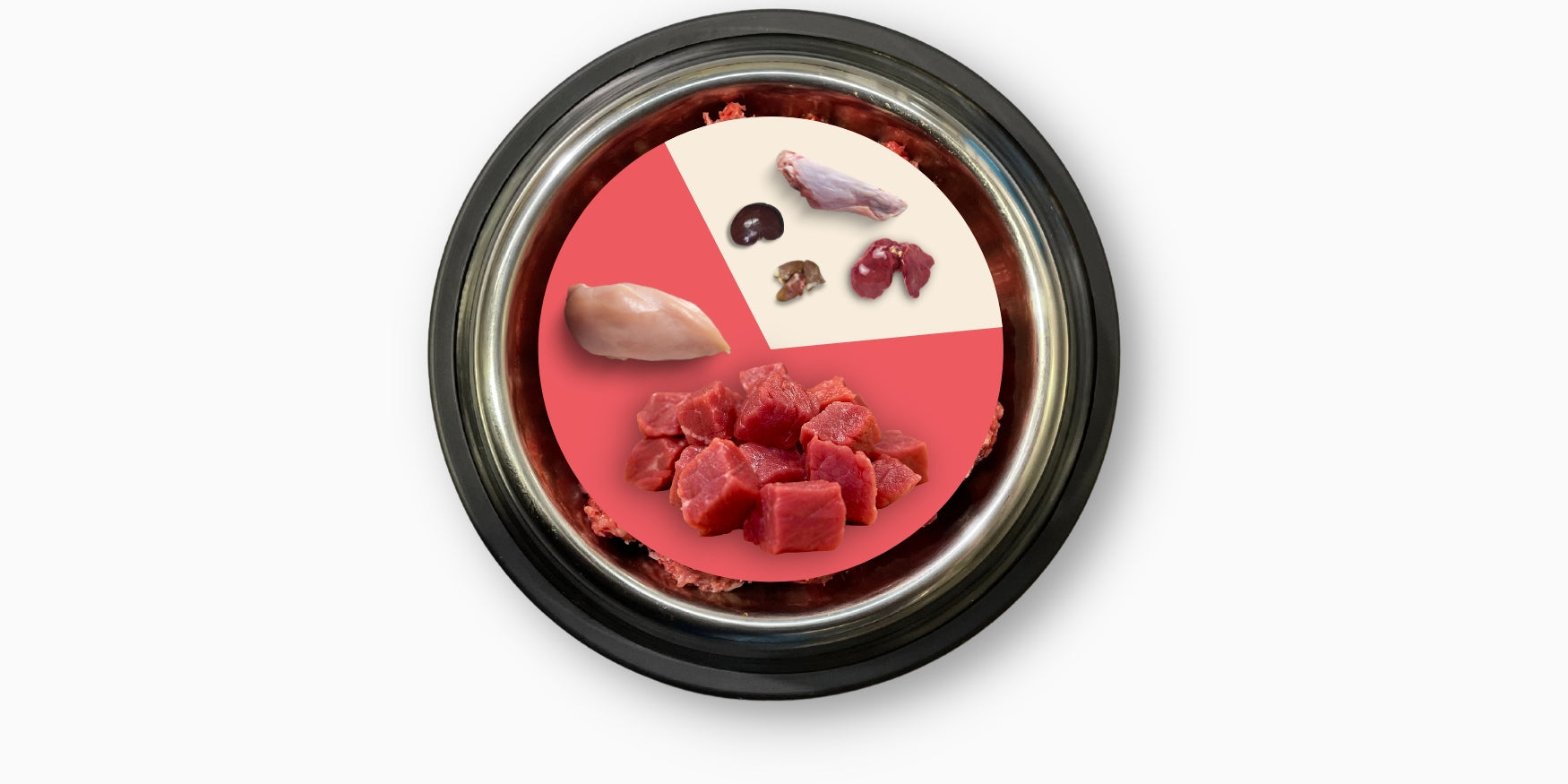 It consists of 80% Muscle Meat, 10% Edible Bone and 10% Organ Meat (secreting and muscle organs).